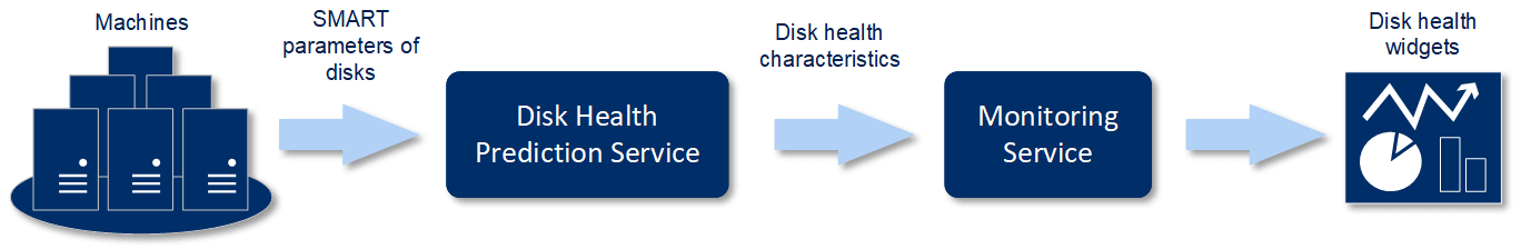 The Disk Health Prediction Service processes the received SMART parameters, makes forecasts, and then provides the following disk health characteristics: