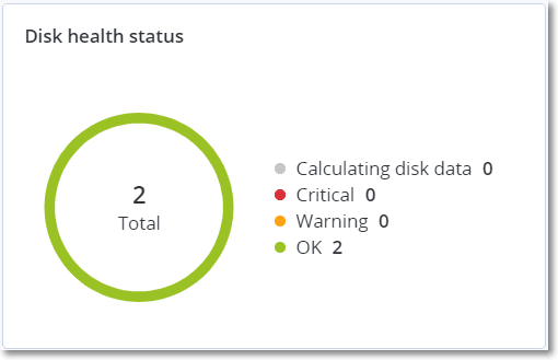 - Disk health status is a pie chart widget that shows the number of disks for each status.