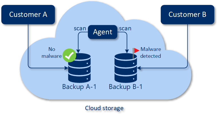 El análisis copias de seguridad lo lleva a cabo el agente en la nube en un entorno se encuentra fuera del equipo del usuario final, es decir, en la nube de Acronis. Todos los planes de análisis de copia de seguridad nuevos crean una nueva tarea de análisis, que se pone en la cola común del centro de datos actual y se procesa según su orden en la cola. El tiempo necesario para llevar a cabo el análisis depende del tamaño de la copia de seguridad, por lo tanto, es posible que experimente cierto retraso entre la creación de un plan de análisis de copias de seguridad y su ejecución.