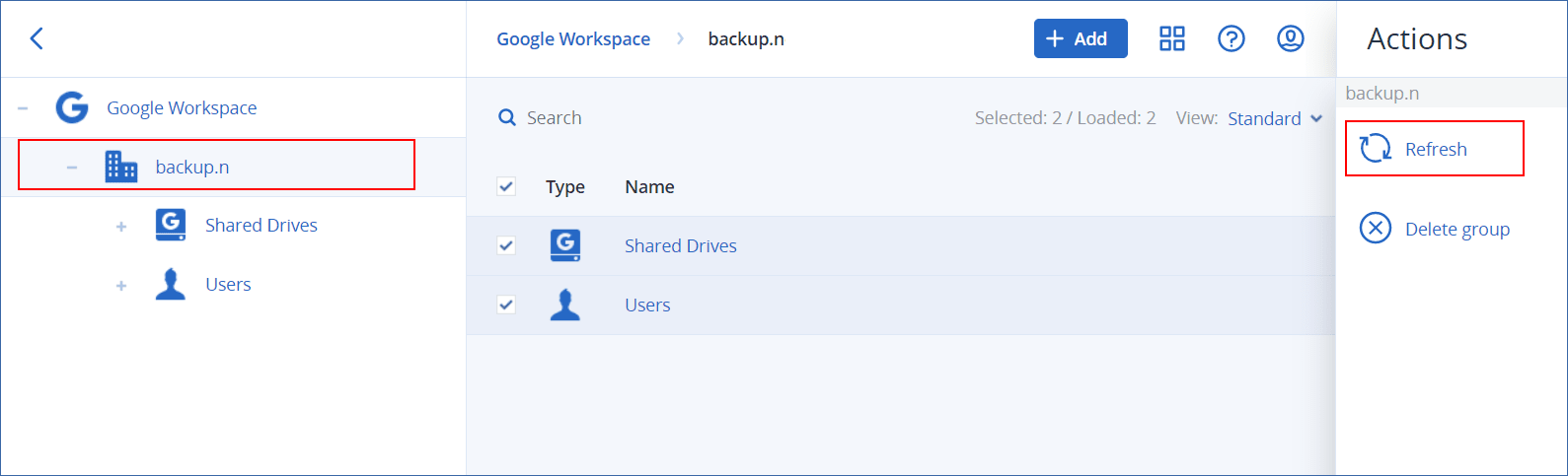 - Select your Google Workspace organization, and then, in the Actions pane, click Refresh.