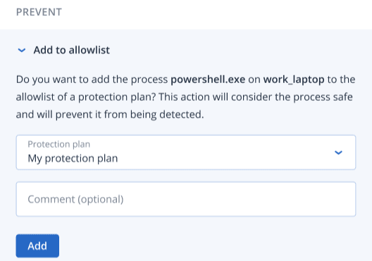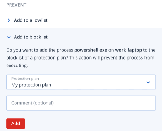 Add a process, file or network to the protection plan blocklist or allowlist