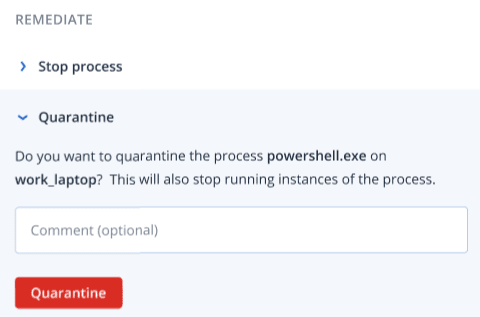 Click Quarantine.The process is stopped and then quarantined.