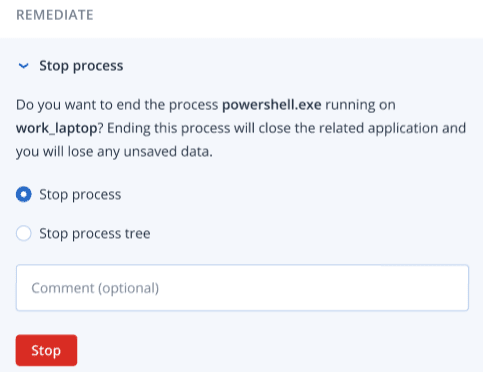 In the Remediate section, click Stop process.