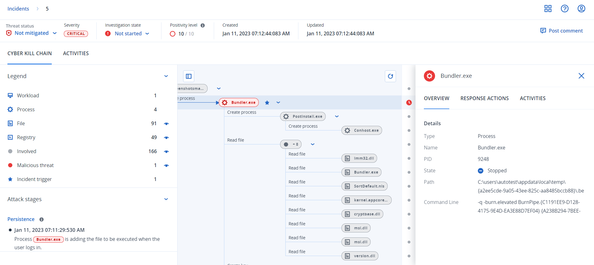 - Investigate each stage of the attack in the Attack stages tab. For further information, see Investigate the attack stages of an incident.
