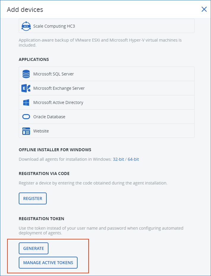 A registration token passes the identity of a user to the agent setup program, without storing the user credentials for the Cyber Protect console. This enables users to register any number of machines under their account without having to log in.