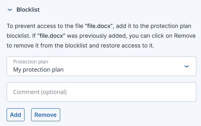 プロセス、ファイル、ネットワークを保護計画のブロックリストで追加または削除するには
